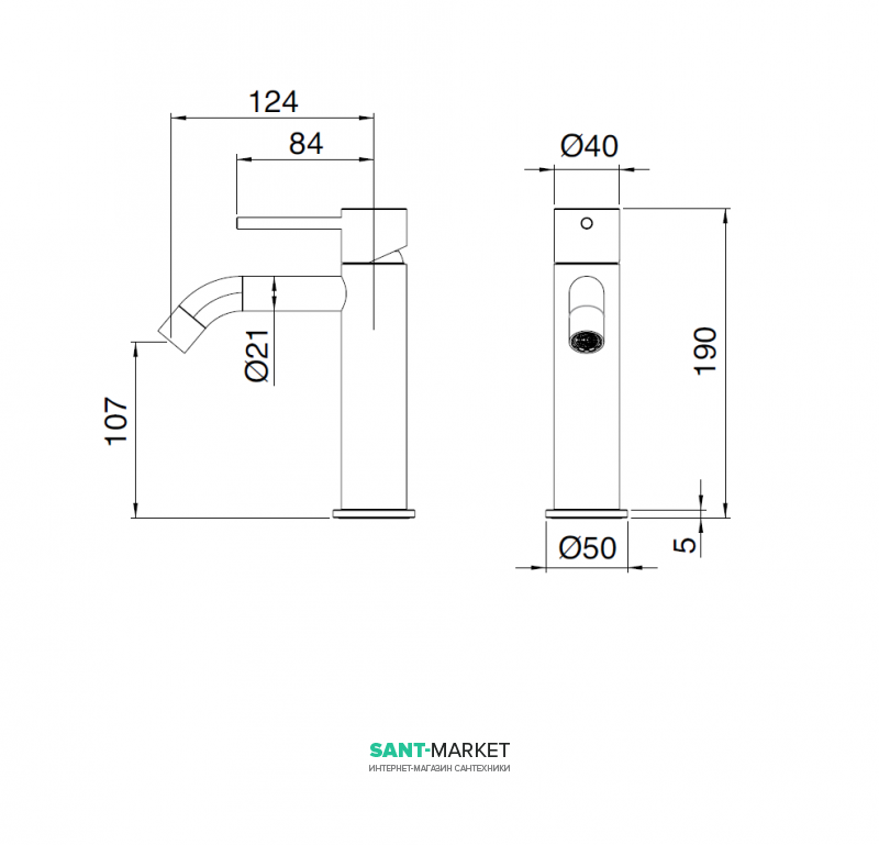 Змішувач для раковини одноважеля Treemme 40мм нержавіюча сталь 1311IS