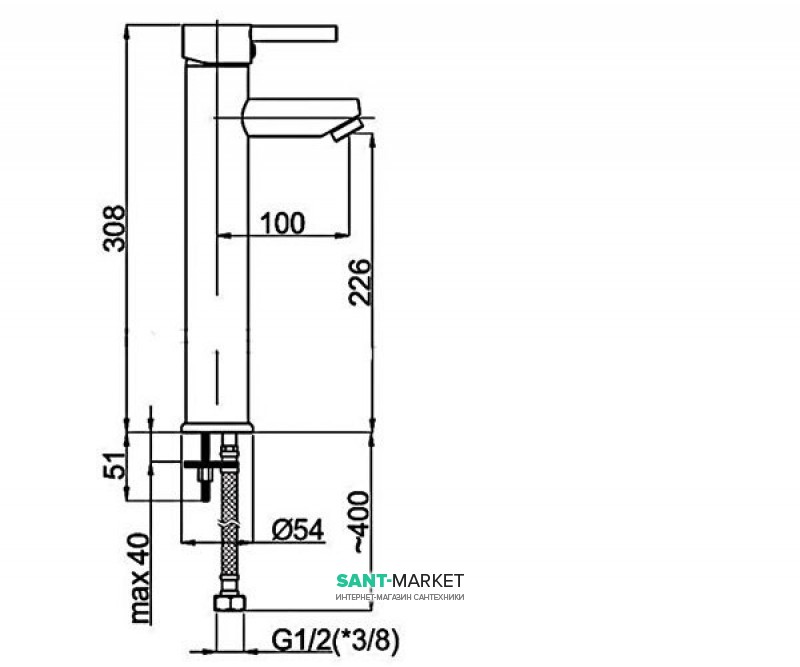Змішувач для раковини одноважеля високий Rubineta колекція Ultra хром UD0008