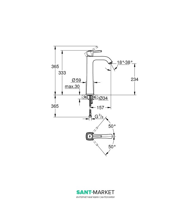 Змішувач для раковини одноважеля високий Grohe колекція Grandera теплий захід 23313DA0