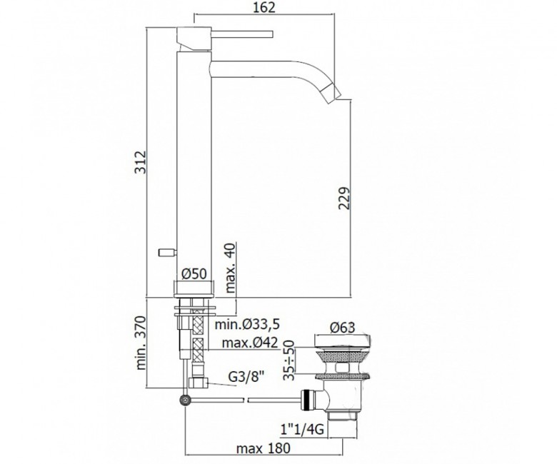 Висота змішувача: