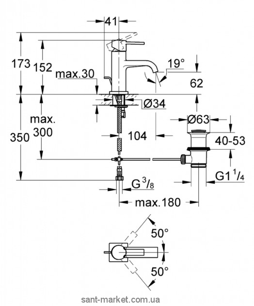 Змішувач для раковини одноважеля з донним клапаном Grohe Allure хром 32757000