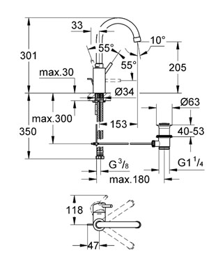 Змішувач для раковини одноважеля з донним клапаном високий Grohe колекція Concetto хром 32629001