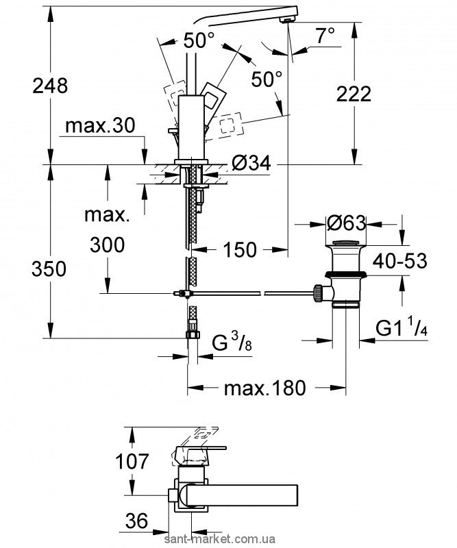 Поспішайте купити Змішувач для раковини одноважеля з донним клапаном Grohe колекція Eurocube хром 2313500E за акційною ціною.