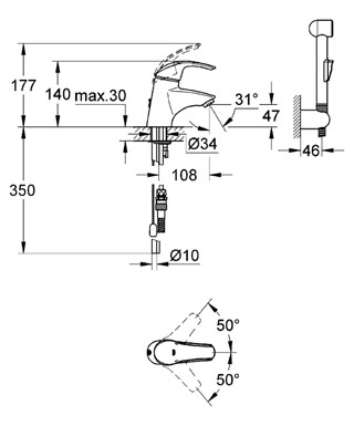 Змішувач для раковини одноважеля з душем Grohe колекція Eurosmart хром 33462001