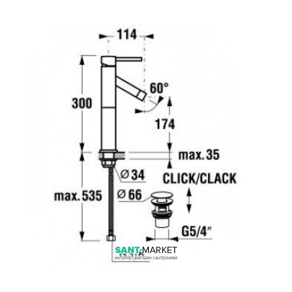 Змішувач для раковини одноважеля з донним клапаном Jika Mio H11718004002