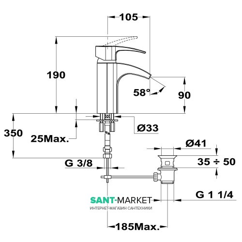 Змішувач для раковини одноважеля з донним клапаном каскадний Teka Vita хром 24.382.02.10