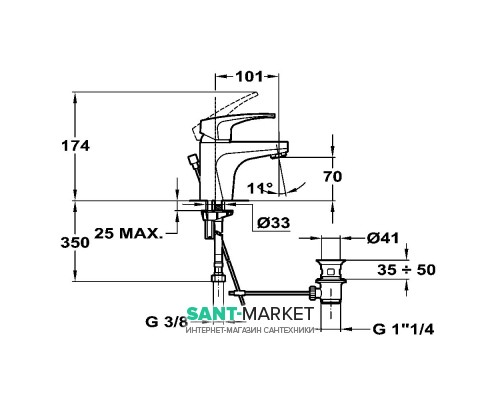 Змішувач для раковини одноважеля з донним клапаном Teka колекція MB2 хром 40.3416.02