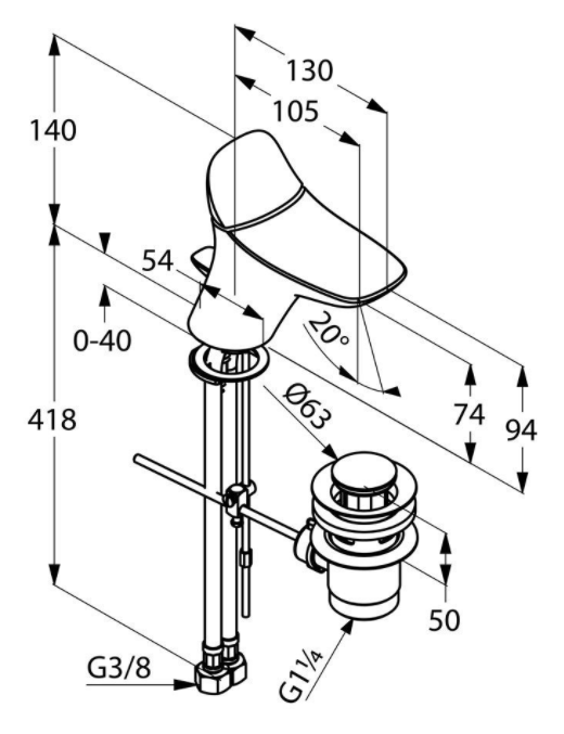 Змішувач для раковини одноважеля з донним клапаном Kludi колекція Ambienta хром 530290575