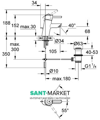 Змішувач для раковини одноважеля з донним клапаном Grohe колекція Concetto хром 32202000