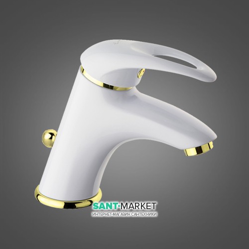Змішувач для раковини одноважеля з донним клапаном EMMEVI колекція Luxor білий / золото BO7003R