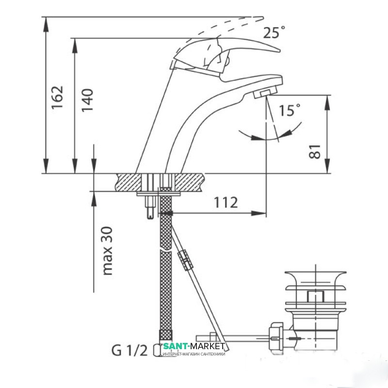 Змішувач для раковини одноважеля з донним клапаном Ferro колекція Ibiza хром BIB2