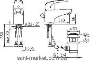 Змішувач для раковини одноважеля з донним клапаном Oras колекція Safira хром 1004F