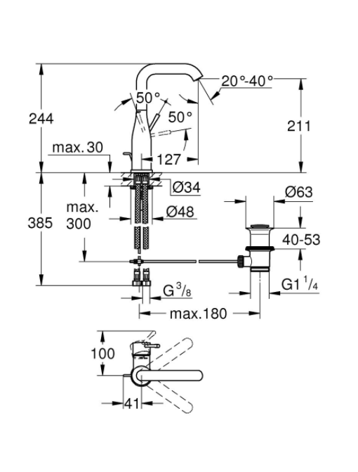 Якщо Ви мрієте створити ванну вашої мрії, подивіться на одноважільний змішувач для раковини зі стандартним виливом GROHE Essence. Його стрункий циліндричний корпус і елегантний вилив створять ідеальний образ для вашої ванної кімнати. Цей стильний моноблочний змішувач буквально наповнений технологіями GROHE. Керамічний картридж із технологією SilkMove® забезпечує ідеальний контроль за витратою та температурою води, завдяки ньому змішувач буде гарним доповненням для сімейних ванних кімнат. Багатошарове стійке до подряпин хромове покриття StarLight® збереже свій блиск на довгі роки. Монтаж на один отвір здійснюється дуже швидко з інноваційною системою QuickFix® Plus. Цей вражаючий змішувач чудово доповнює інші продукти в колекції, такі як змішувач одноважільний для душу Essence.
