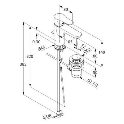 Змішувач для раковини одноважеля з донним клапаном Kludi колекція Objekta хром 322330575