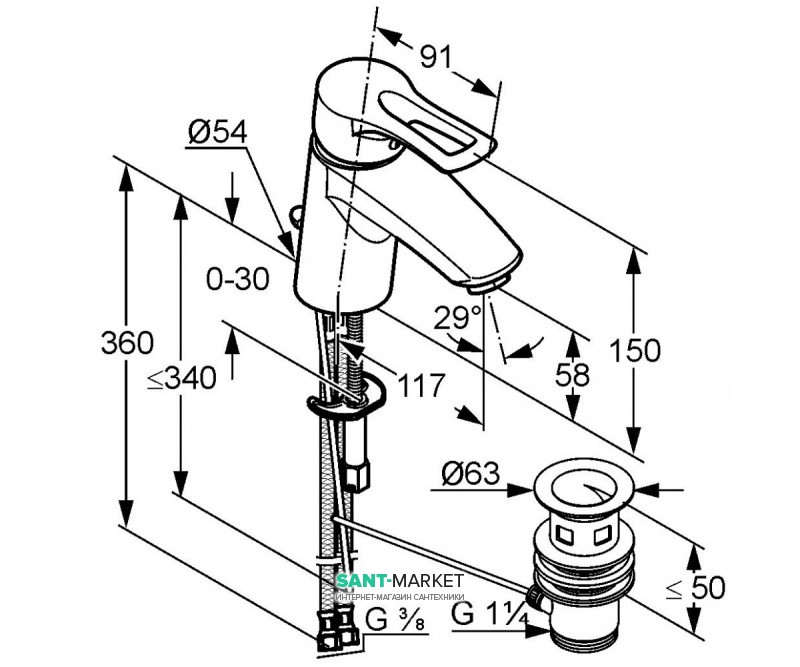 Змішувач для раковини одноважеля з донним клапаном Kludi колекція MX хром 331250562