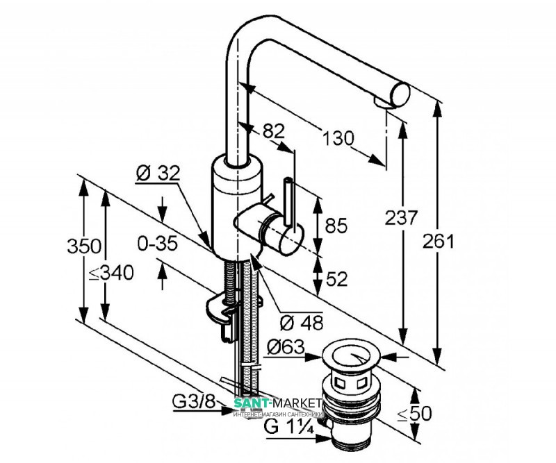 Висота змішувача:
