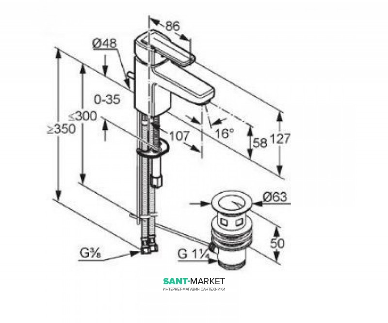 Змішувач для раковини одноважеля з донним клапаном Kludi колекція Q-Beo хром 501290575