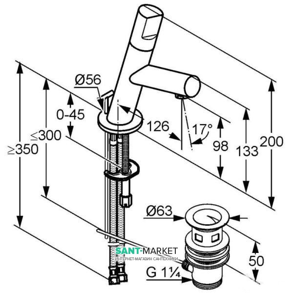 Змішувач для раковини одноважеля з донним клапаном Kludi колекція New Waves хром 571290575