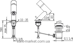 Змішувач для раковини одновентільний з донним клапаном Oras колекція IL Bagno Alessi One хром 8500F