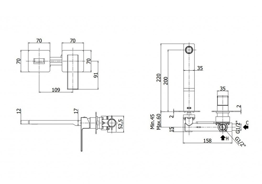 Стандарт підводки: 1/2