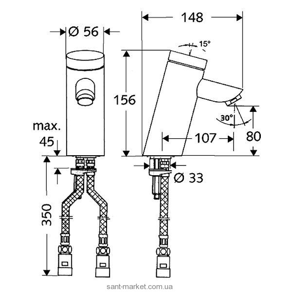 Високоякісний суцільнометалевий змішувач дозатор Schell 021250699 призначений для монтажу на раковину. Антивандальна конструкція корпусу. Змішувач розрахований на підведення гарячої та холодної води. Температура на виході регулюється прихованим під кнопкою механічним змішувачем.