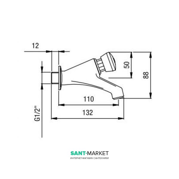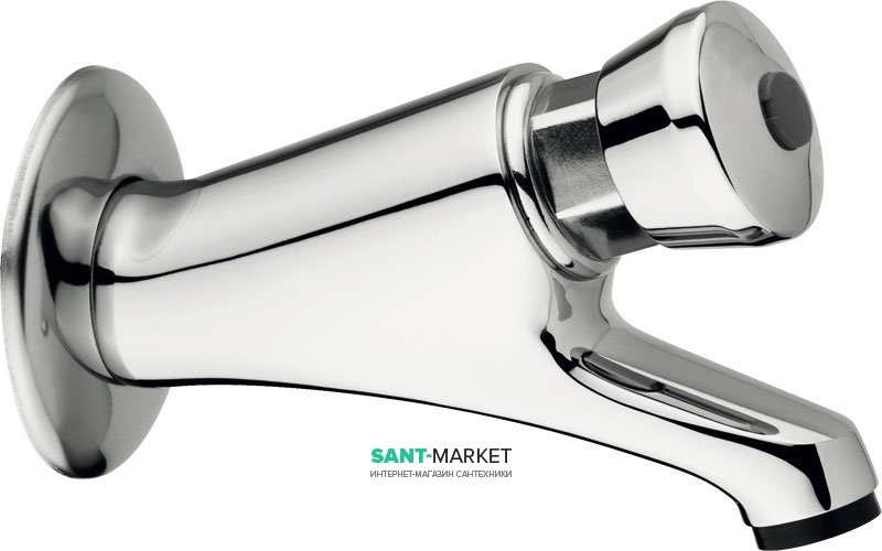 Настінний змішувач для умивальника, порційний на одну воду. Змішувач ідеально підходить для громадських місць з великою прохідністю, дозволяючи раціонально використовувати та економити воду.