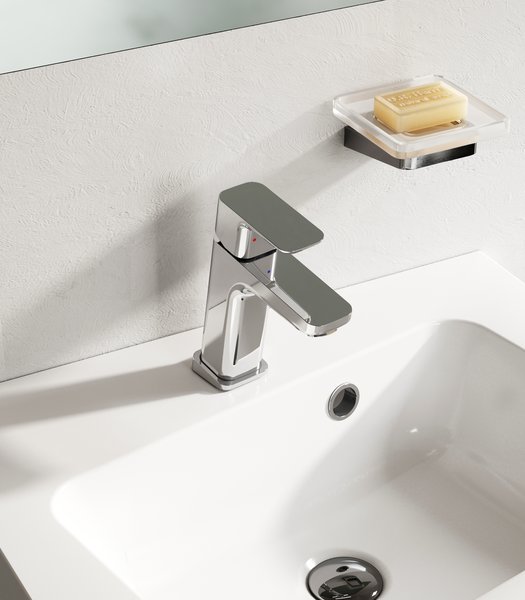 Практичний нахил змішувача до руки і всередину умивальника дозволяє з легкістю їм управляти і полегшує чистку в важко доступному місці між змішувачем і стіною. Новий дизайн важеля з гладкою поверхнею.
