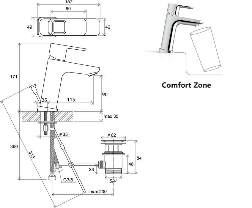 - висота змішувача 171 мм - збільшена висота - більший комфорт