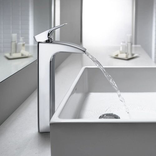 Високий змішувач для раковини Roca Thesis A5A3450C00 з донним клапаном. Покриття: хром, неповоротний виливши, Одноважільний управління.