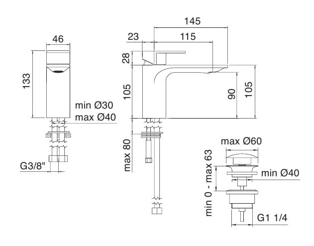 1) Змішувач для раковини Treemme Ran змішувач матовий чорний