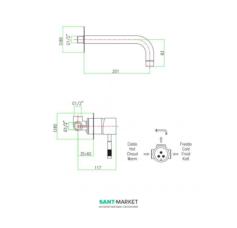 Змішувач для раковини з стіни Fiore XENON хром 44CR5227