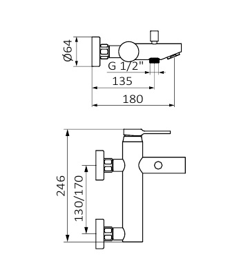 Змішувач для ванної GRB Time Black з ручним душем чорний матовий