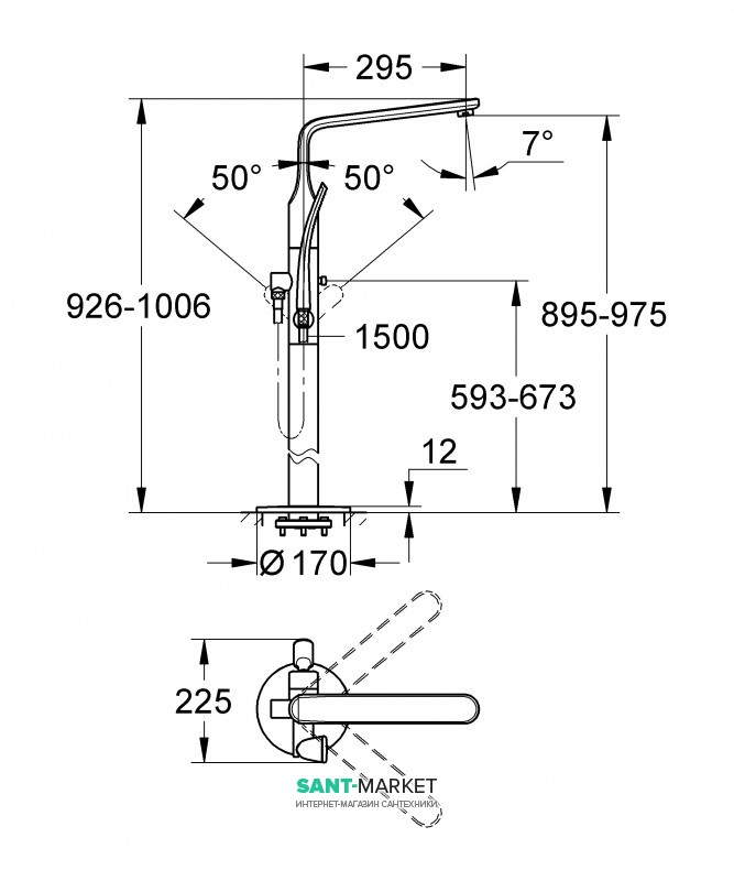 Для установки необхідний 45984001 Монтажний набір для змішувача підлоги GROHE