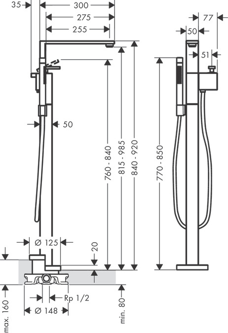 Змішувач для ванни Hansgrohe Axor Edge підлоговий хром 46440000