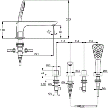 Змішувач для ванни Kludi Ameo двухвентильний на 4 отвори 414240530