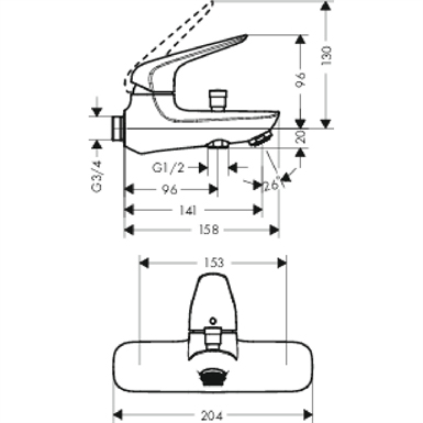 Змішувач для ванни настінний одноричажий Hansgrohe колекція Novus хром 71041000
