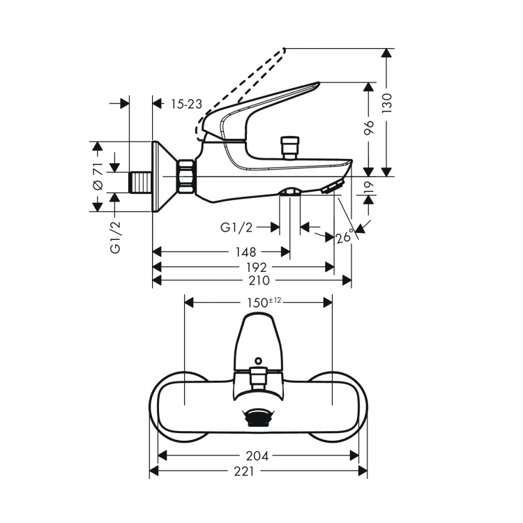 Змішувач для ванни настінний одноричажий Hansgrohe колекція Novus хром 71042000