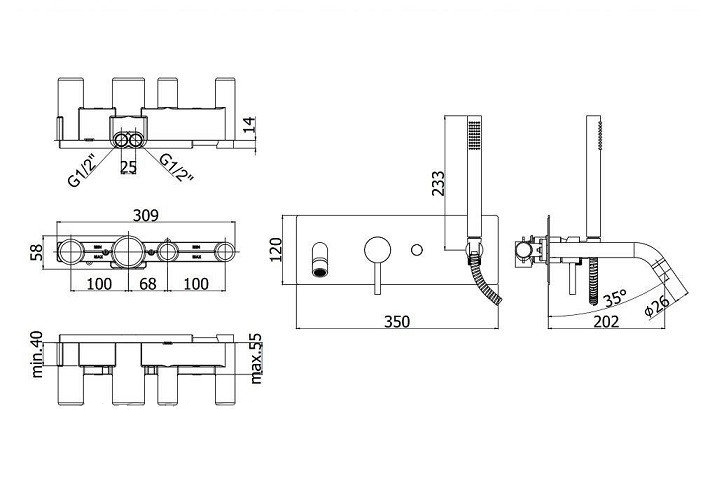 Довжина виливу досить велика-20,2 см, а глибина монтажу в стіну - 5,5 см.