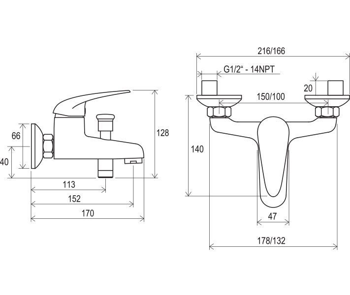 1) Змішувач для ванни Ravak Suzan SN 022.00 / 100 змішувач хром
