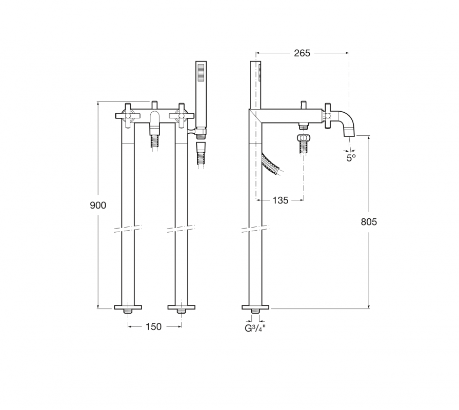 Змішувач для ванни Roca Loft двухвентильний підлоговий з ручним душем A5A2743C00