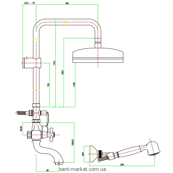 - Дивитися інші: Душові стійки для ванни з виливом Fiore
