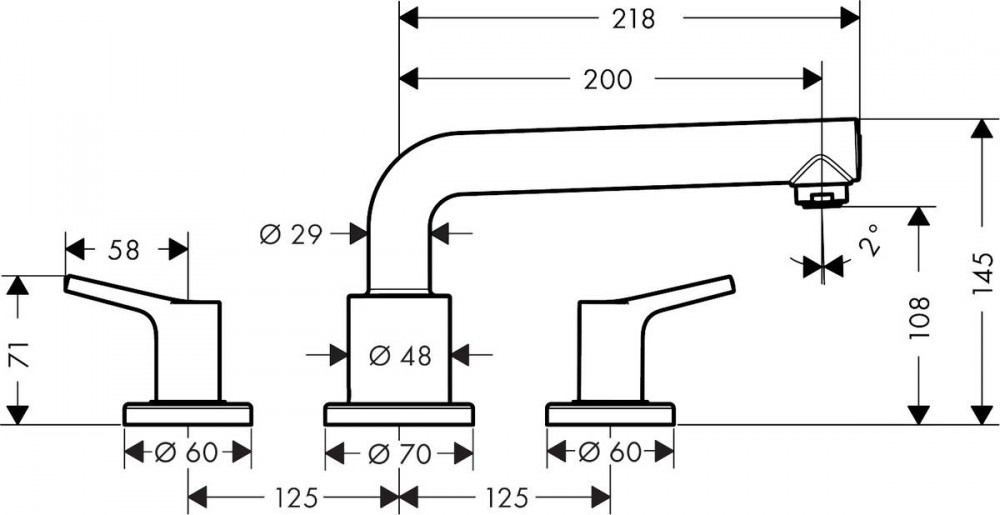Змішувач Двохважеля на борт ванни Hansgrohe колекція Talis S хром 72415000