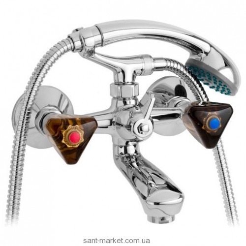 Змішувач MOFEM "STELLA" 202 ДЛЯ ВАННИ ТА УМИВАЛЬНИКА з прозорими ручками коричневого кольору, латунним виливом S110,з 1500 мм.шлангом. Настінний тримач для душу. Лійка "Базик". Аератор М24х1. Економний картридж.