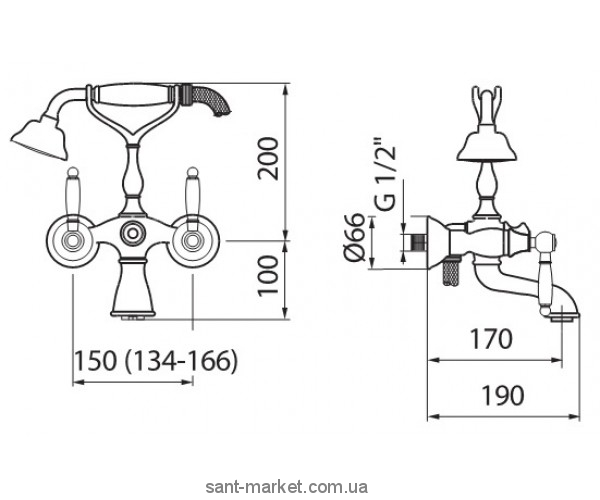 Змішувач двохвентильний для ванни з душем Webert колекція Dorian бронза DO720201.065