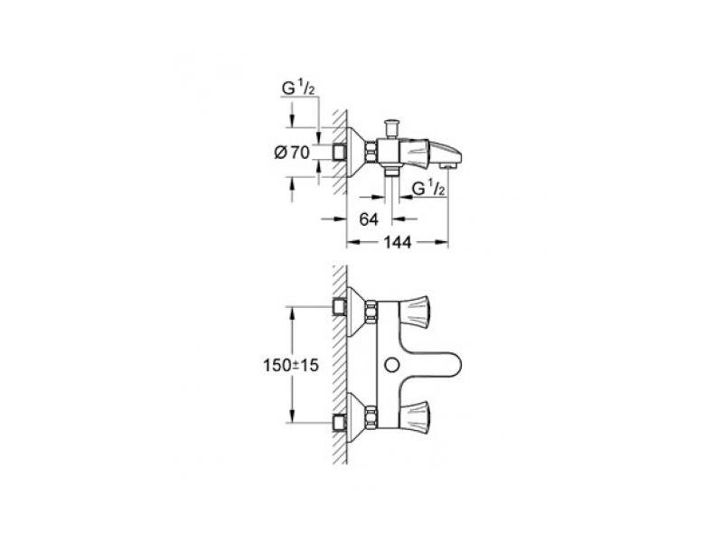 GROHE StarLight® хромована поверхня, приховані S-подібні ексцентрики, додатковий обмежувач температури (46308000), металеві рукоятки з теплоізоляцією, вентиль Longlife з гумовим ущільненням.