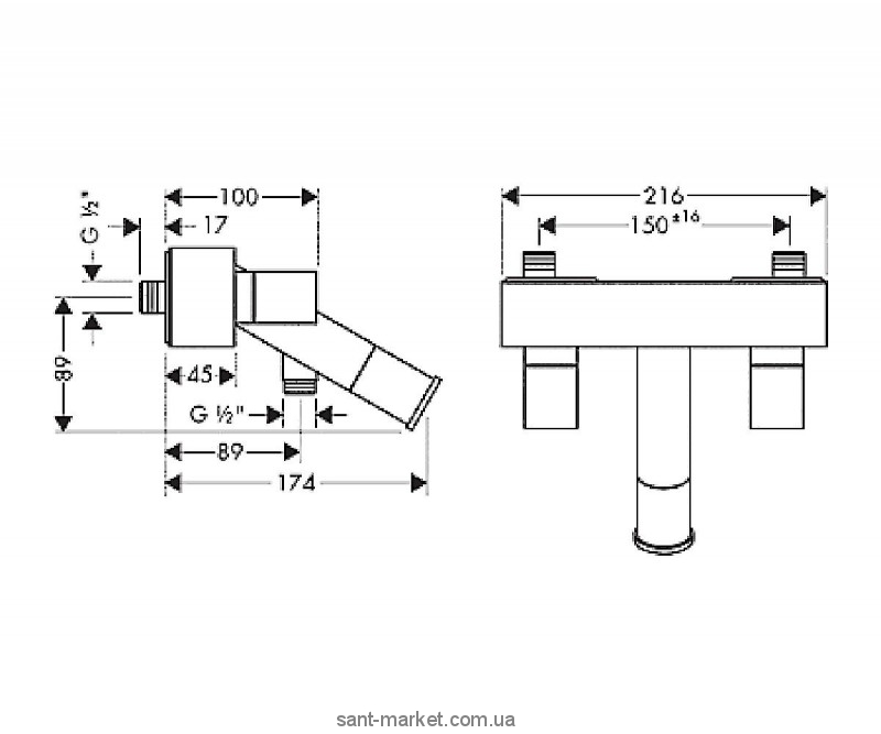 автоматичне перемикання душ/ванна, захист від зворотного струму води, ексцентрики з шумопоглинаючим ефектом Hansgrohe, з кріпленням