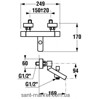 Змішувач двохвентильний для ванни з коротким виливом Jika колекція Cubito хром 3.2242.7.004.000.1