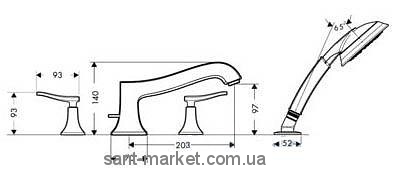 Змішувач двохвентильний на борт ванни з душем Hansgrohe колекція Metris Classic хром 31314000