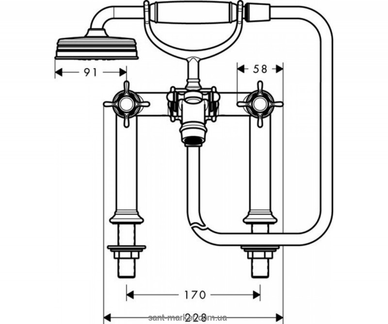 Змішувач двохвентильний на борт ванни з душем Hansgrohe колекція Axor Mondial хром 16542820