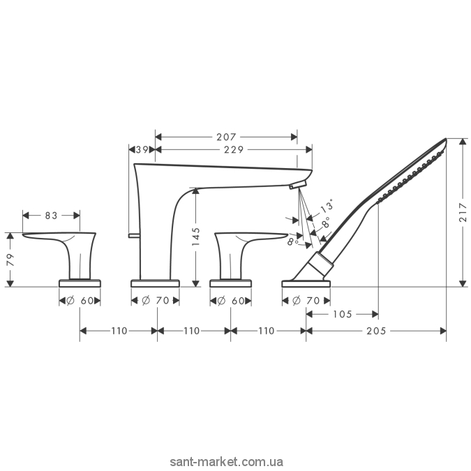 рукоятки, виливши на ванну, ручний душ 28558000, шланг 1100 мм